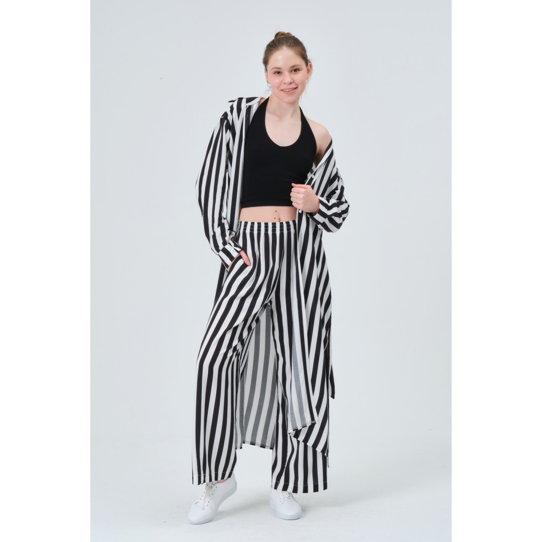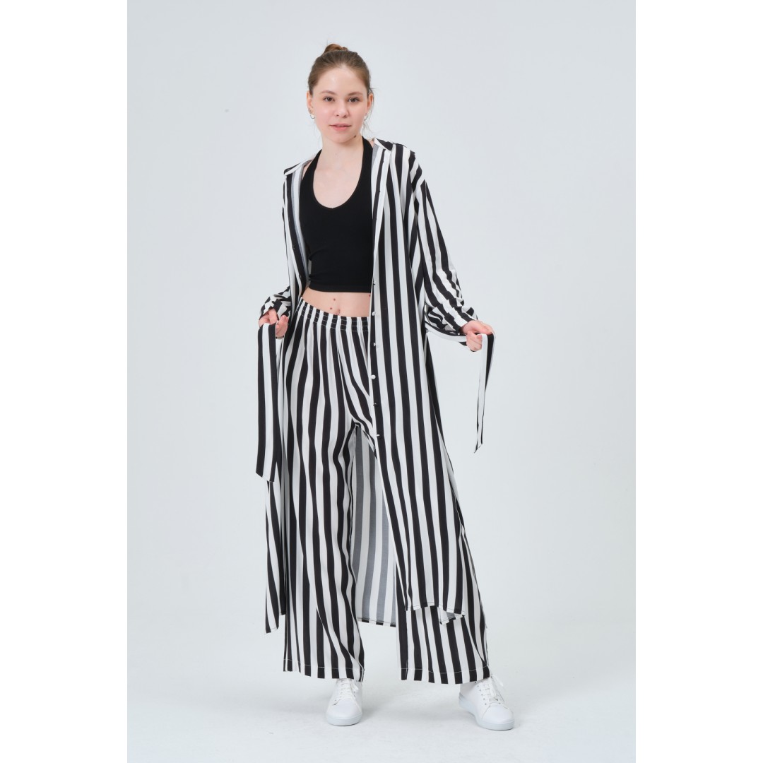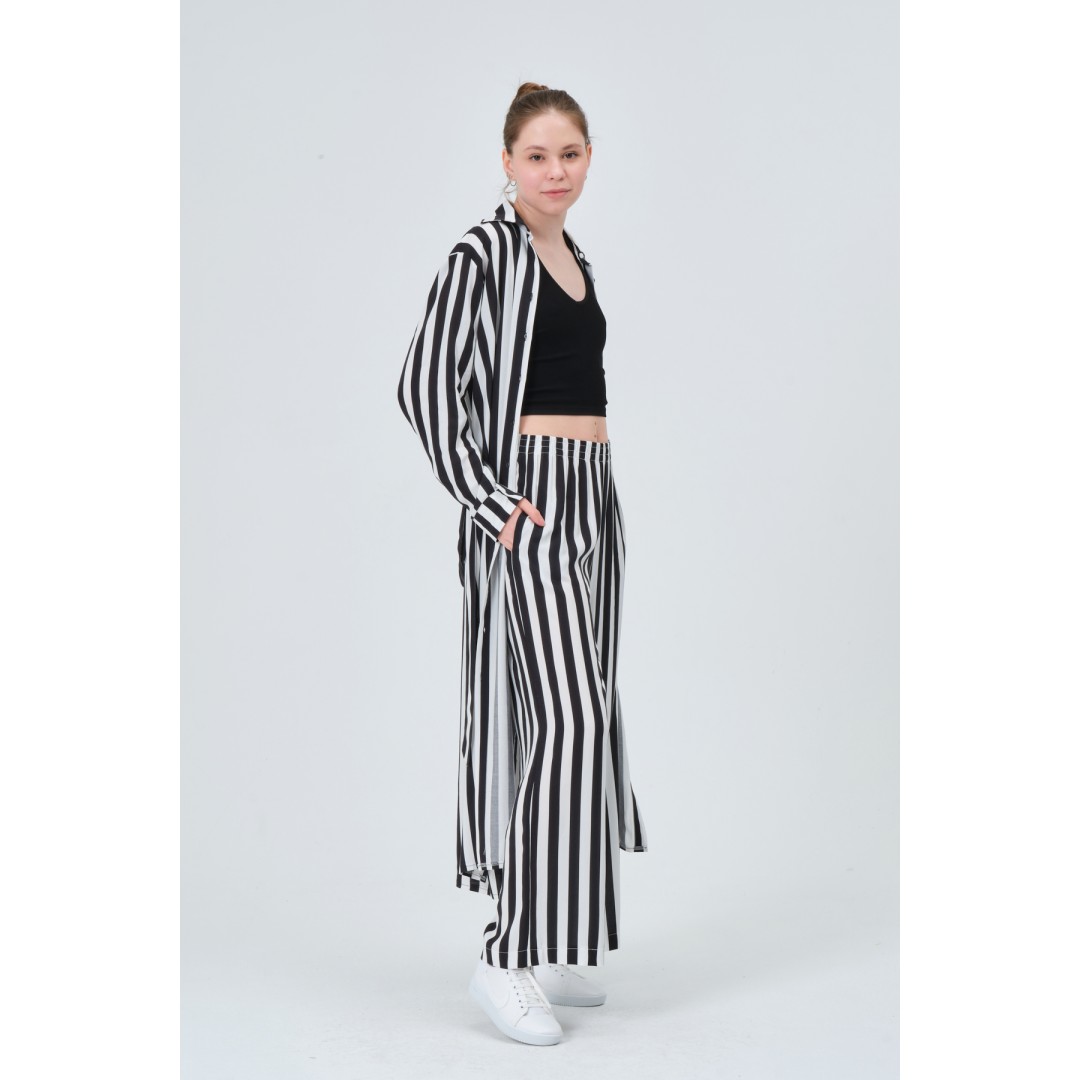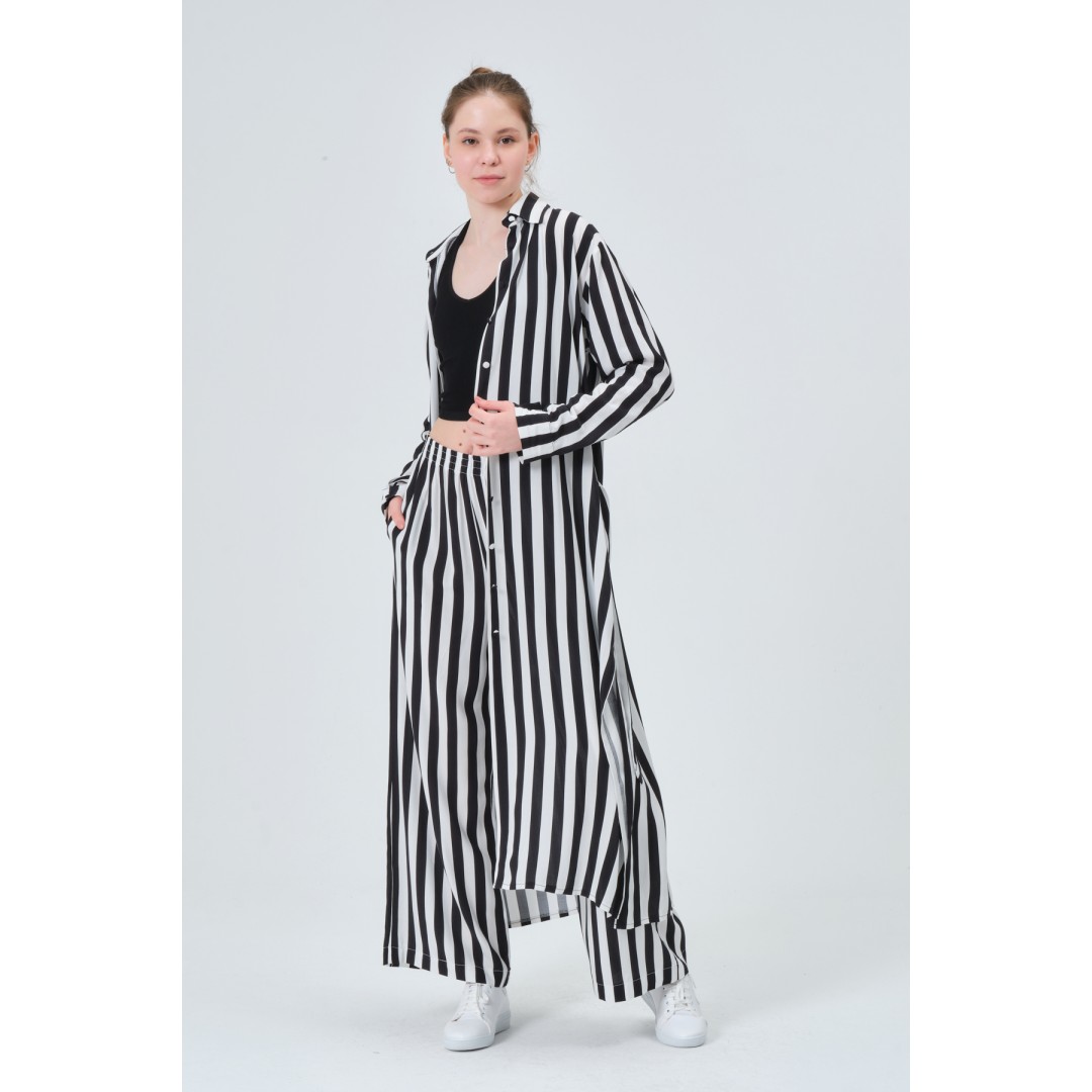 DOKUMA VİSCON UZUN GÖMLEK ELBİSE&PANTOLON TAKIM